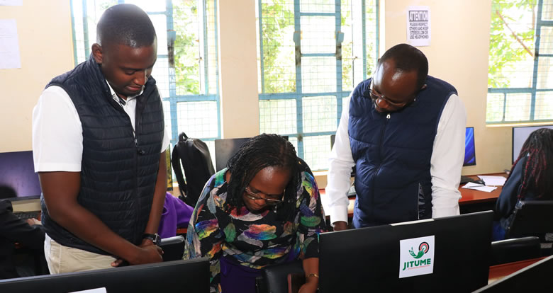 The University of Embu (UoEm) on Monday, 8th December 2025, welcomed three officials from Konza Technopolis who visited to conduct an audit on the progress of the Jitume Programme. The team was led by the Chief Manager, Audit, CPA John Karanja, accompanied by Ms. Elizabeth Mutua and Mr. Ian Kiptui. They were received by the Deputy Vice-Chancellor, Academics, Research & Extension, Prof. Paul Nthakanio, who briefed them on the University’s milestones and achievements since its inception. The officials later toured the Computer Laboratory where the Jitume Programme is being implemented.