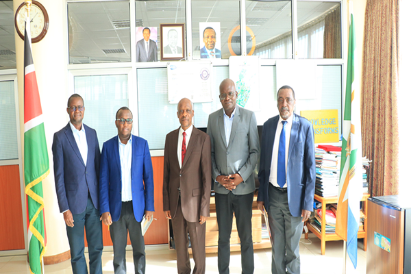A team of three officials from the Ministry of Co-operatives, Micro, Small and Medium Enterprise (MSME) Development visited the University of Embu on Wednesday, 21st January 2026, to conduct due diligence on the propagation of coffee planting materials. The team was led by Hon. Kennedy Kilwake of the Ministry of Co-operatives and Small Enterprise, accompanied by Dr. James Gisame, a Research Scientist, and Mr. Muhia Mwirigi, Deputy Director, Agriculture Extension, New Kenya Planters Co-operative Union. They were received by the Ag. Deputy Vice-Chancellor, Academics, Research and Extension, Prof. Paul Nthakanio, and the Dean, School of Agriculture, Dr. Samuel Ndirangu. The team later visited the University nursery.