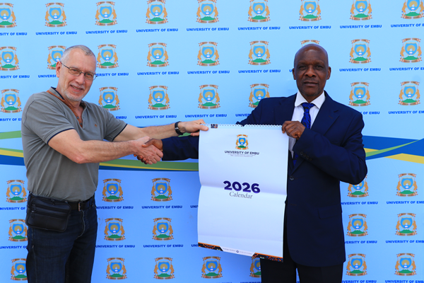 A team of 2 officials from CIRAD AIDA -Galileo Project made a courtesy visit to the University on Tuesday 3rd March, 2026. The time was led by the Head of AIDA Research Unit, Dr. Bruno Bachelier. They were welcomed by the DVC, Academics Research & Extension, Prof. Paul Nthakanio, on behalf of the Vice-Chancellor, Prof. Daniel Mugendi.